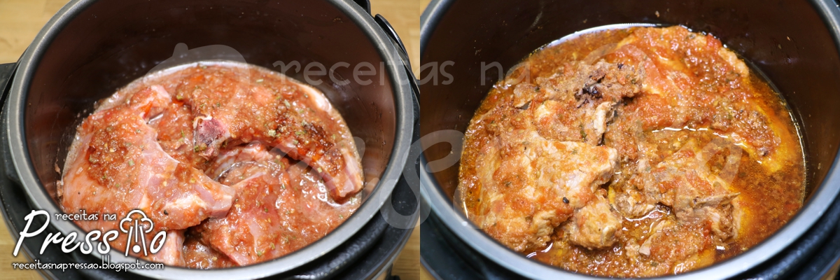 Quando o tempo terminar retire a pressão, abra, acrescente as ervas picadas, misture novamente e sirva. Se desejar poderá deixar o o molho apurar um pouco ao seu paladar.